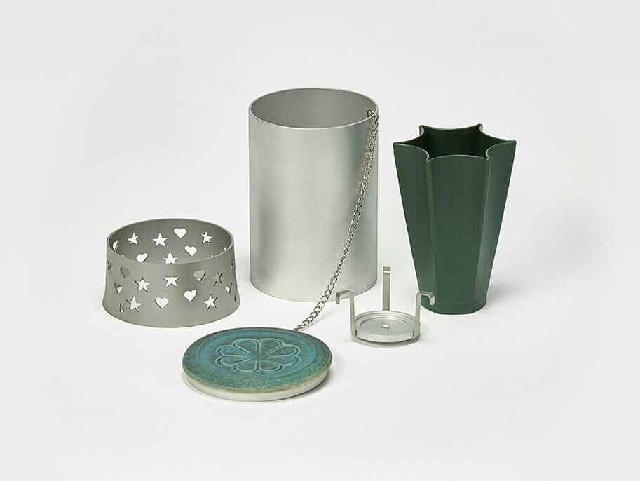 Lågene til udsmykning er udført i enten ler, glas, granit, kobber eller bronze. Alle materialer, der kan genbruges.